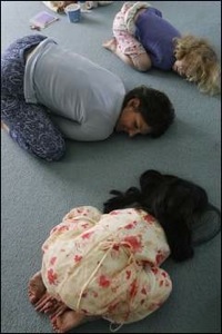 In this case, the children at First Unitarian Church of Toledo are demonstrating a yoga pose called “sleeping mouse.” The moment of crumpled tranquility soon passes and the group moves on to the next pose.