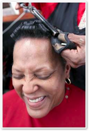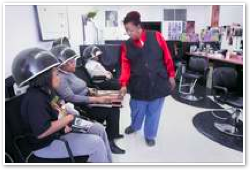 As she waits for her curling iron to heat up — she has 22 lying around — Ms. Cason-Coats tells her customers, sitting with their heads in hair dryer machines, about a recent trade show she went to and hands out a couple of books she picked up showing various hair styles. Then she plops down in a chair and holds forth, like a queen.