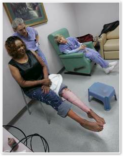 As the lesson neared its end, there was a moment of quiet when Mrs. Richardson just looked at herself in the mirror as workers from the burn unit watched.