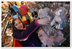 Collin Walsh, 8, used his own money to buy a Webkinz last week at Yankee Doodle Flag Co. in Sylvania Township. He chose a cocker spaniel while his brother, Evan, got a Webkinz pug.