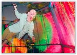 Hell's Gate features a giant, gruesome maze in the Francis family's backyard. Stationed throughout are realistic-looking body parts — many homemade from Styrofoam and a special goop made with joint compound — and a cast of creepy characters. The highly detailed rooms cover the traditional Halloween continuum, from bloody Big Top to butcher shop to insane asylum.