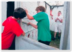 None of this was able to discourage Nick or his cousin and co-owner, Max Simon, 14, of Strongsville, Ohio, who with their team of friends were determined to bring this demented dream to fruition. Nick, a junior at Toledo Technology Academy, has been organizing haunted houses since he was in first grade but none of them looked anything like this.