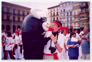Taking its cue, the band begins to play - the city has its own Town Hall brass band, La Pamplonesa, for the festival - and those who follow its tune march over to the square of the Navarreria. There, rowdy foreigners take turns climbing up and jumping off the fountain into the (hopefully) waiting arms of their friends.