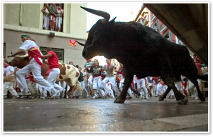 It's not enough for visitors to run alongside a half dozen bulls; they must confront them face to face. Runners who make it in time (and anyone who chooses to hop over a small wall) actually chase the bulls into the bullring.