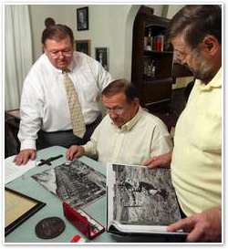 Peter, Charles and Edward J. Ujvagi, from left, examine old photos. (THE BLADE/ANDY MORRISON)
