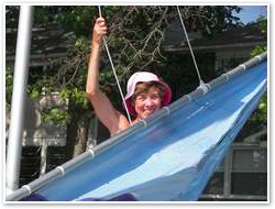 Bryan native Mary Jo Fitzenrider peeks out from behind a boat’s sail in one of the Women of Clear Lake calendar photos.