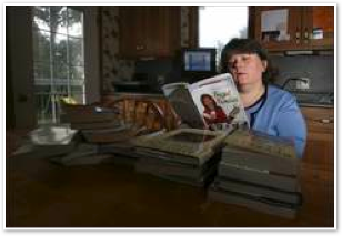 Books fill Dawn Trumbull's shelves, litter her son's bedroom floor, sit in boxes in her attic.